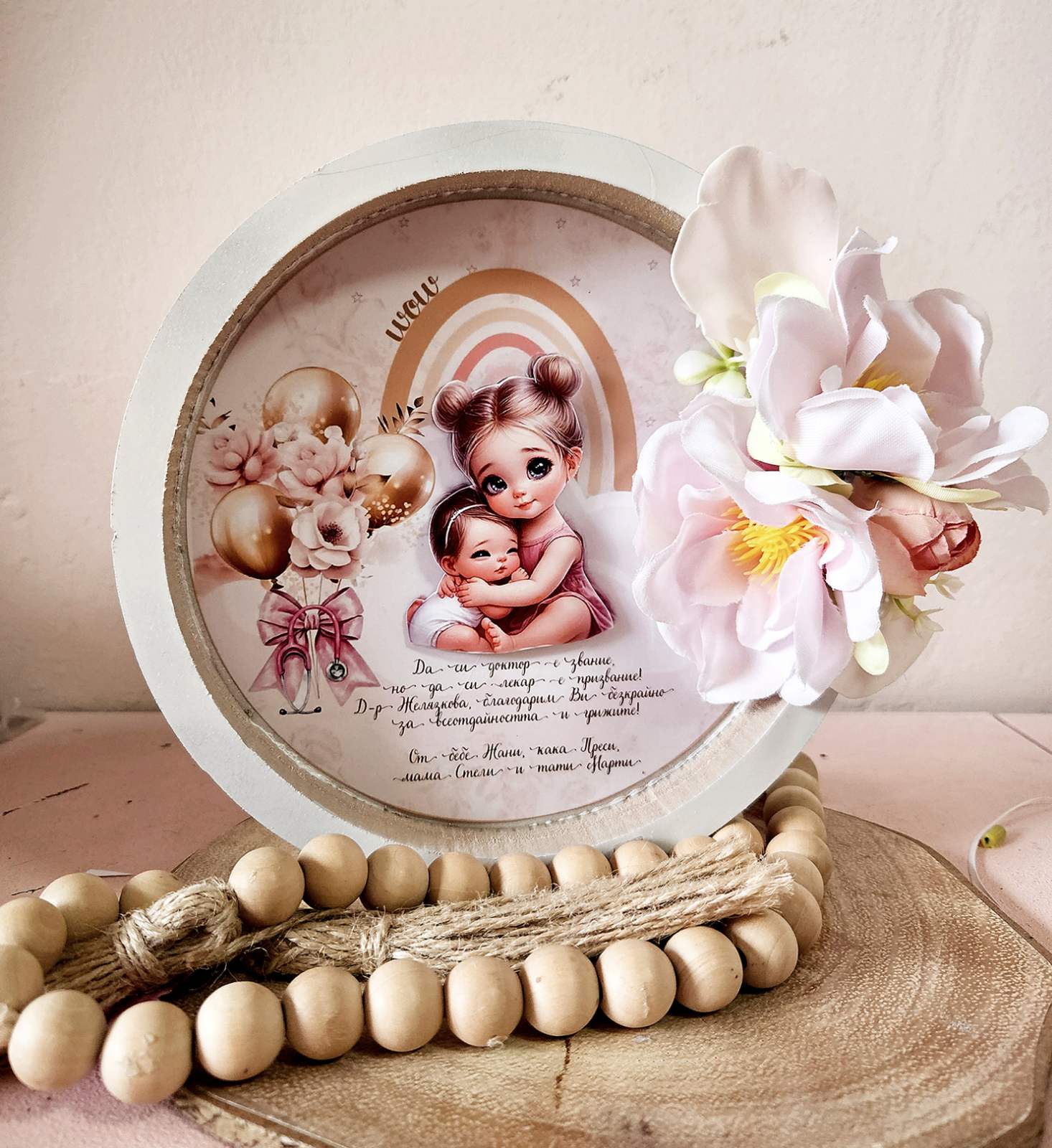 Персонализирана рамка размер 16см диаметър, с послание и дизайн по ваш избор за любим лекар